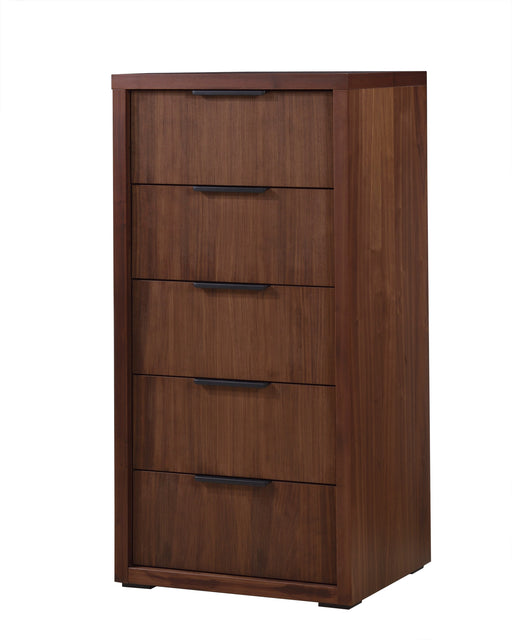 Description The Milo Chest combines refined simplicity with everyday practicality. Crafted from solid wood and walnut veneer, it features five smoo...
