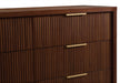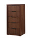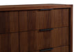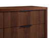 The Milo Chest combines refined simplicity with everyday practicality. Crafted from solid wood and walnut veneer, it features five smooth drawers accented with sleek black handles. The tall, narrow profile provides generous vertical storage while maintaining a clean and modern aesthetic. Its rich walnut tone brings warmth and character to the bedroom, pairing beautifully with other pieces in the Milo collection for a coordinated and timeless look.