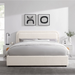 The Nyssa bed frame combines cozy texture with dependable support, featuring plush beige lambswool upholstery and a softly rounded single-panel headboard. The frame is padded with sponge for added comfort and impact protection, creating a warm, inviting look. Built with a durable plywood and eucalyptus wood structure, it includes a reinforced 12-slat system and 3 center support legs, providing up to 500 lbs of stable weight capacity. Finished with black plastic legs for a clean, low-profile silhouette, this bed offers both comfort and contemporary style for any bedroom.