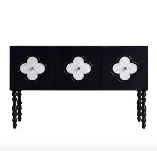 Description The Clover Sideboard intricate floral inlay patterns that create a stunning contrast against its rich dark finish. The carefully crafte...