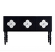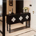 The Clover Sideboard intricate floral inlay patterns that create a stunning contrast against its rich dark finish. The carefully crafted details bring an artistic elegance to the piece, while the carved spindle legs introduce a classic, sculptural touch. Designed with a spacious interior, this sideboard provides functional storage for dining essentials, décor, and everyday items. Blending traditional craftsmanship with modern sophistication, it serves as a striking focal point for dining rooms, living rooms, or hallways.
