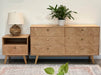 The Terra 6-Drawer Dresser brings brightness and modern elegance to your bedroom. Crafted from solid oak and oak veneer, it features a natural finish that highlights the wood’s organic grain and texture. The inward-angled legs and subtle brass accents add a touch of sophistication, while six spacious drawers offer generous storage for clothing and essentials. With its clean lines, minimalist profile, and refined details, the Terra 6-Drawer Dresser is the perfect statement piece for a serene and stylish bedroom.